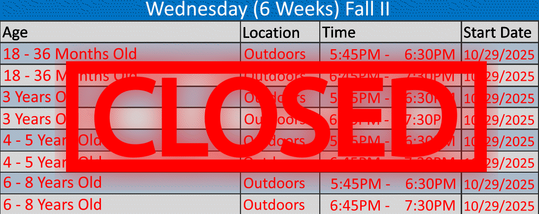 **If there are not enough registrations for the requested age class we will contact you to move you to another location, if possible, OR refund the cost of the class to you.**If we ARE able to accommodate either your first or second choice, we will issue a refund up until 72 business hours before the season begins, however, there will be a $45 application fee that will be deducted from all early registration withdrawals minus the 3% website processing fee. The only exception to this is once classes are sold out at a specific location, those classes cannot be resold, and therefore we will not offer any credits or refunds.